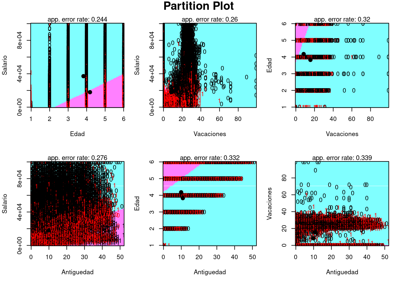 plot <- partimat(Estudios ~ Salario + Edad + Vacaciones + Antiguedad, data = laboralTrain, method = "lda")