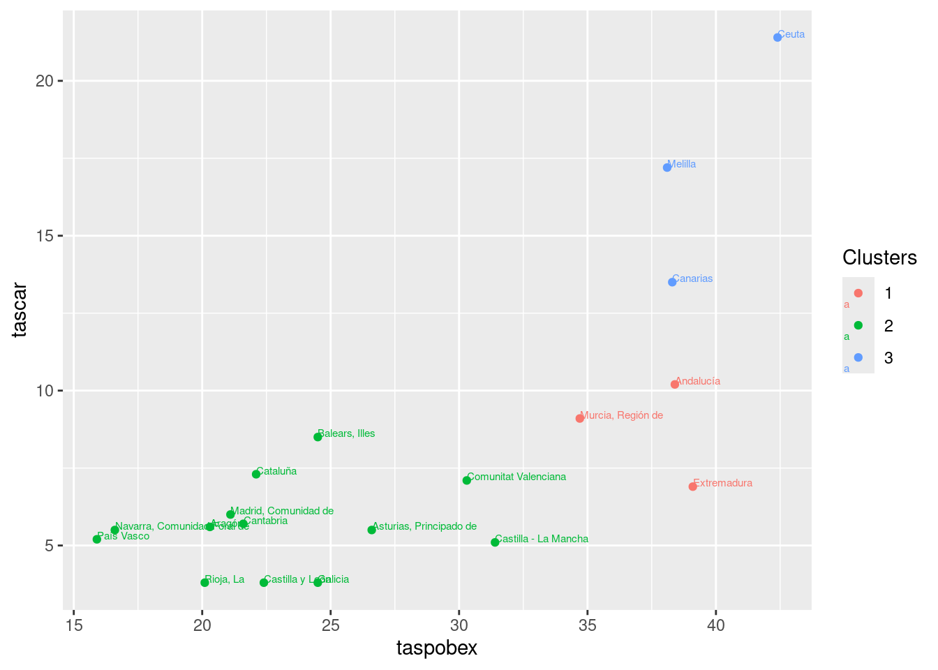 • Variables sobre las que se buscan cluster (taspobex, tascar).