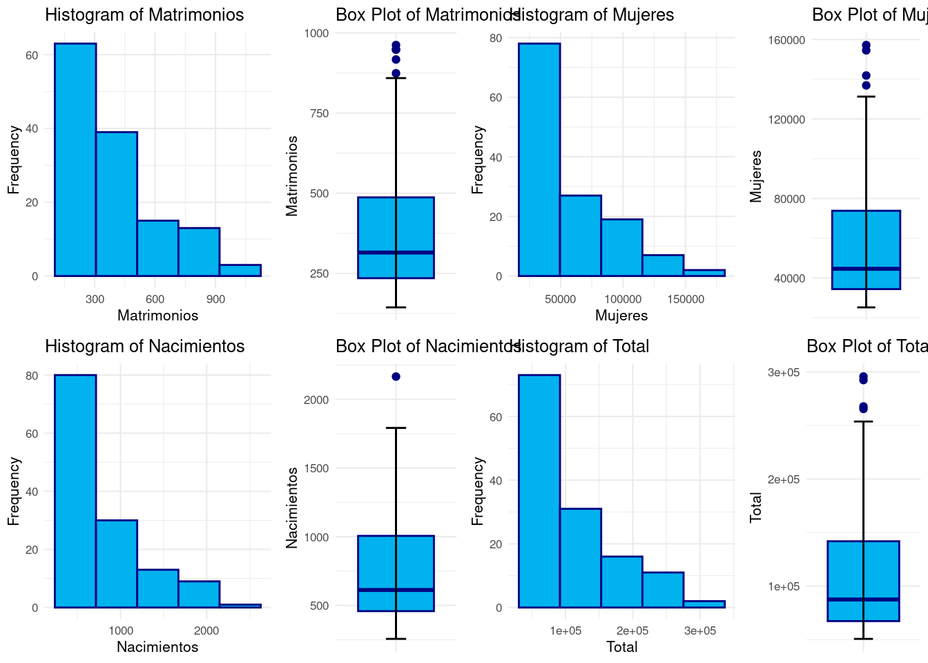labs(title = "Box Plot of Mujeres", x = "", y = "Mujeres") +
