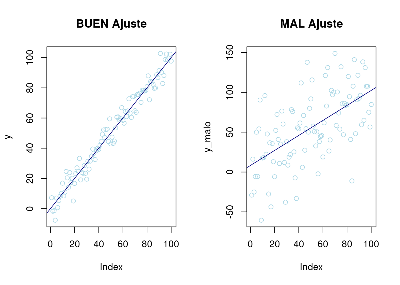 step(lm1, direction = "backward", criterion = "AIC")Destacar que como comentábamos el modelo con sólo un término parece ser también bueno. Veamos como programarlo y analicemos su bondad.