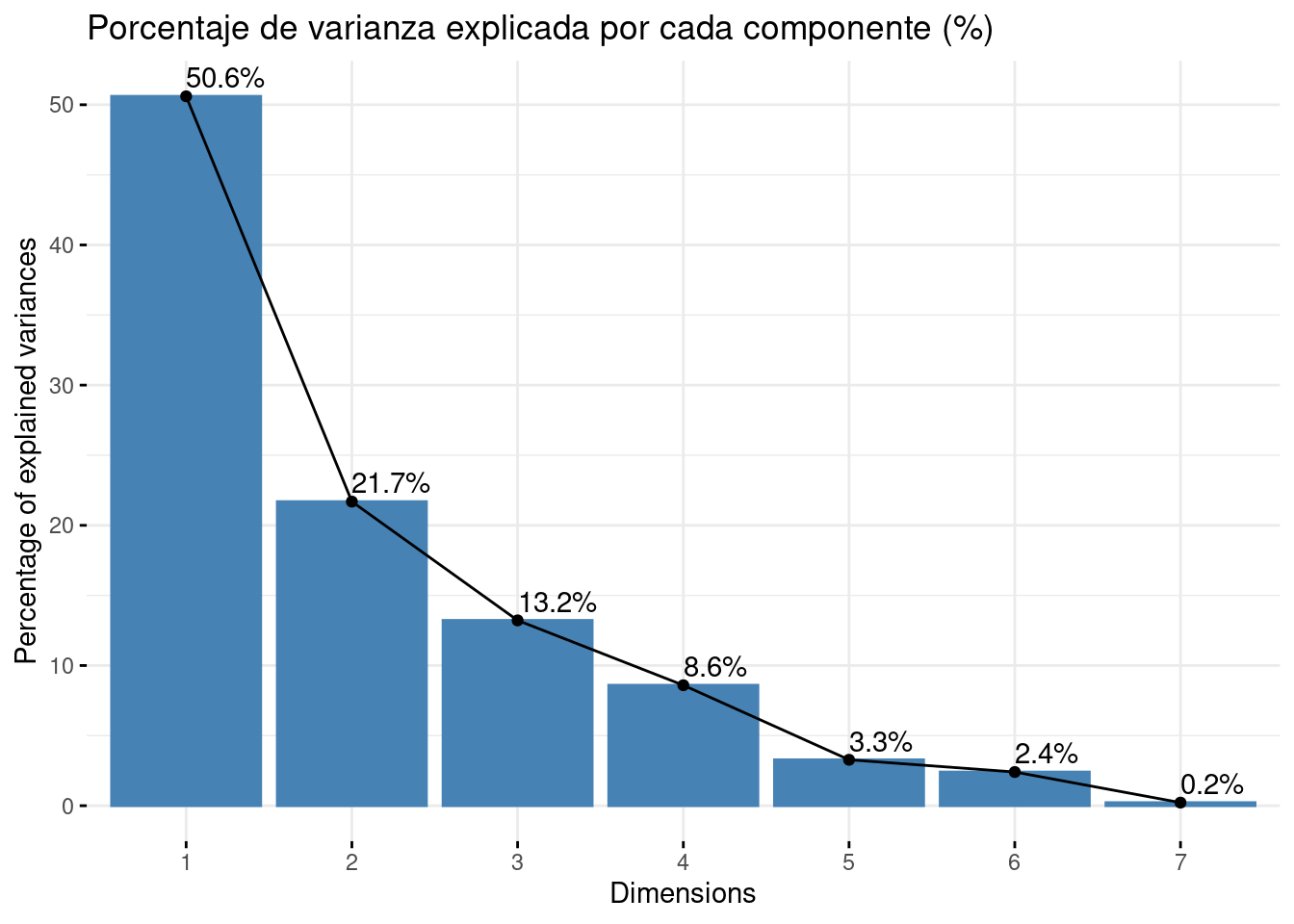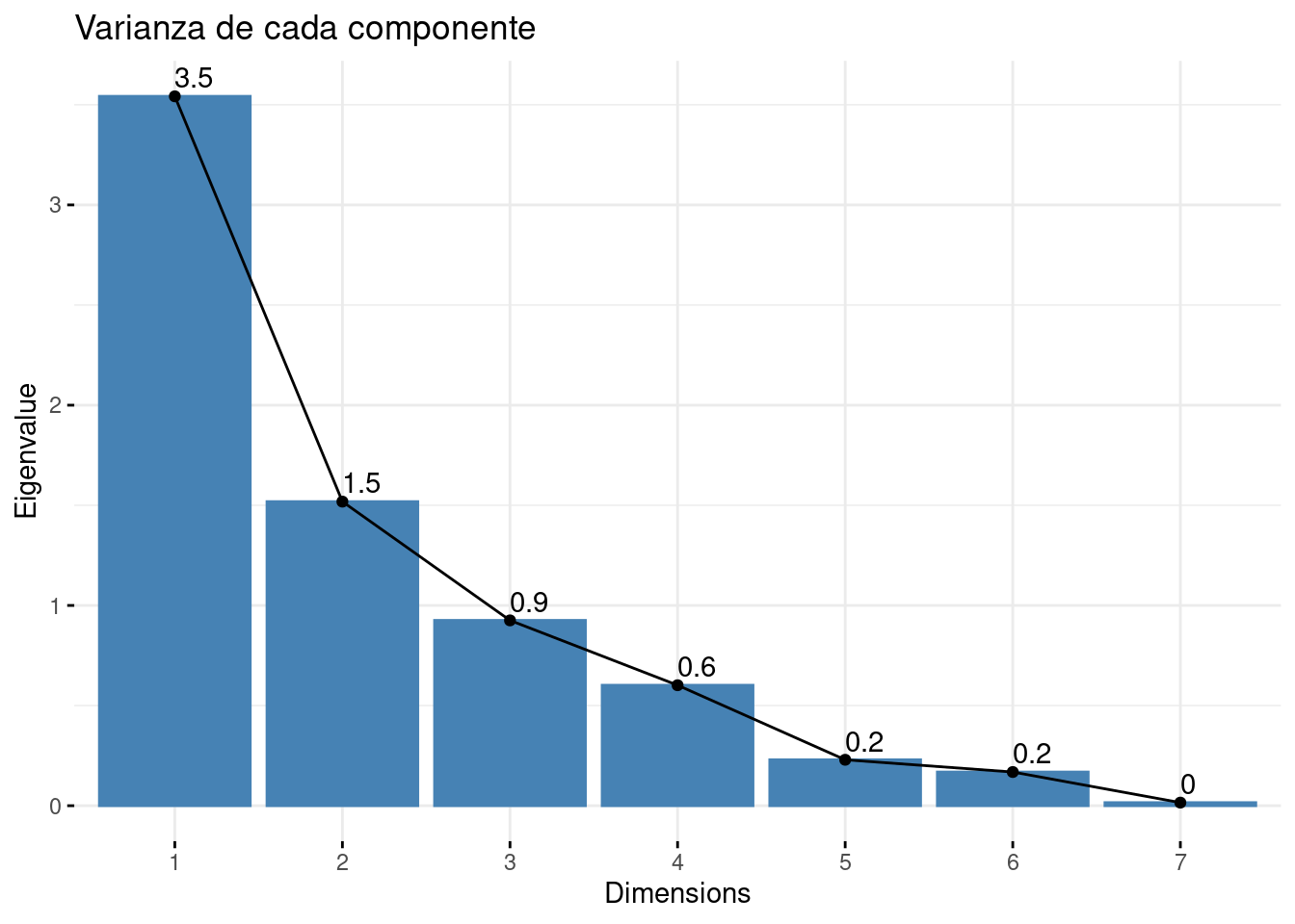 pca$sdev^2 # varianza de cada componente[1] 3.54217490 1.51832920 0.92527315 0.60150104 0.22922822 0.16816380 0.01532969